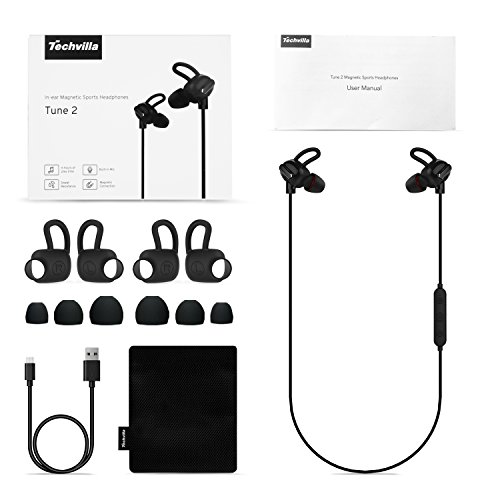 -. Title : Bluetooth Headset Techvilla Best Wireless Earbuds V4.1 Noise Isolating Waterproof Sweatproof HD Stereo Headphones with Mic(Tune2)