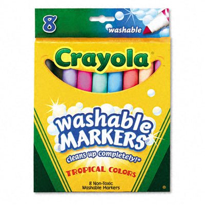 Studio : Crayola LLC Publisher : Crayola LLC Binding : Office Product Product Description BIN587816 Features: -Marker type: Art. -Assortment: Blue Lagoon, Coral Reef, Dolphin Gray, Flamingo Pink, Sandy Tan, Seafoam Green, Tropical Violet, Wild Orchid. -Tip type: Broad. -Age Recommendation: Ages 4 and up. -Compliance standards: AP Certified Nontoxic. -Made in United States. Product Type: -Markers. Country of Manufacture: -United States. Dimensions: Overall Height - Top to Bottom: -9.3". Overall Width - Side to Side: -2.2". Overall Depth - Front to Back: -0.7". Overall Product Weight: -0.26 lbs. 0