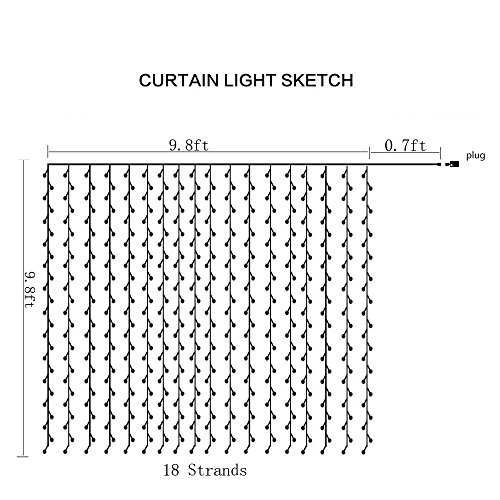 - Fairy curtain string light, 9.8ft*9.8ft (3m*3m), 8 mode options-combination, in waves, sequential, slogs , chasing/flash, slow fade, twinkle/flash, and steady on