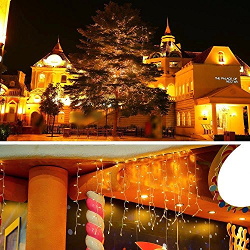 - Icicle curtain Christmas lights: decorations for Tree Holiday Celebrations, Wedding, Ceiling, Wall, Curtains, Stage, Home, Party, Shop Window,Background,Garden, Commercial Buildings, Patios, Balcony, Pergola, Pool, Fence