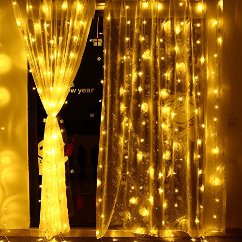 Icicle Curtain Lights, 8 Modes, 306 LED Cutest Fairy String Lights Indoor Outdoor Wall Background Decorative Lights for Wedding/Festival/Party/Garden/Home Christmas Decorations (Warm White)