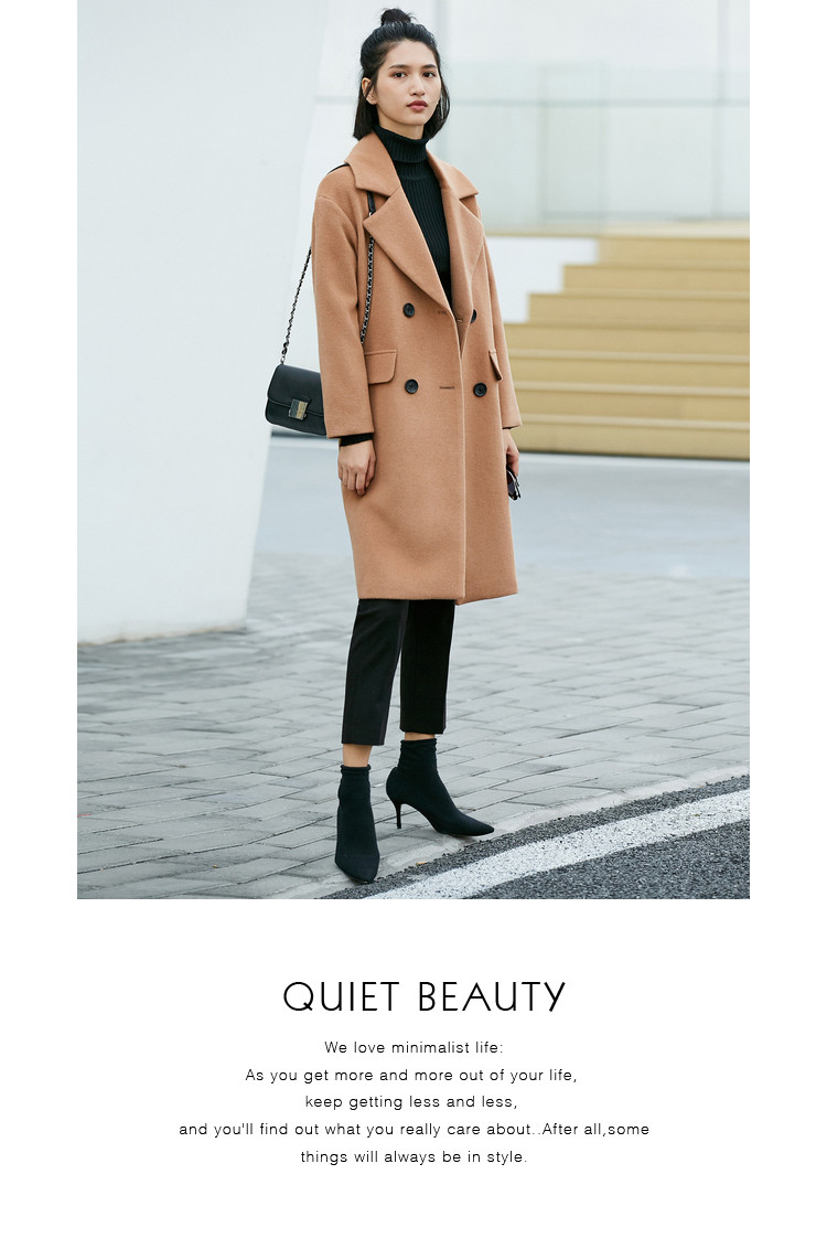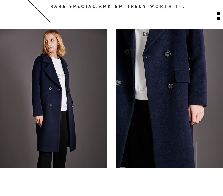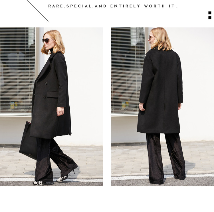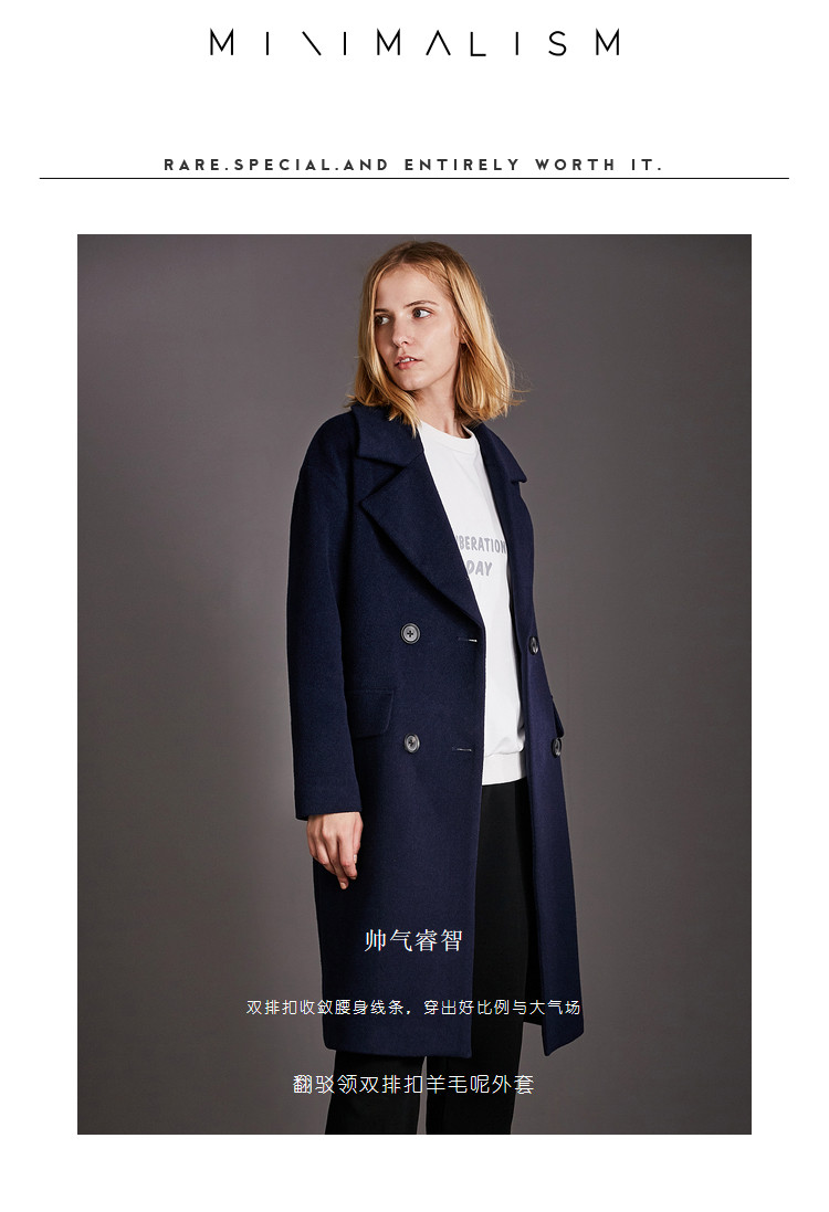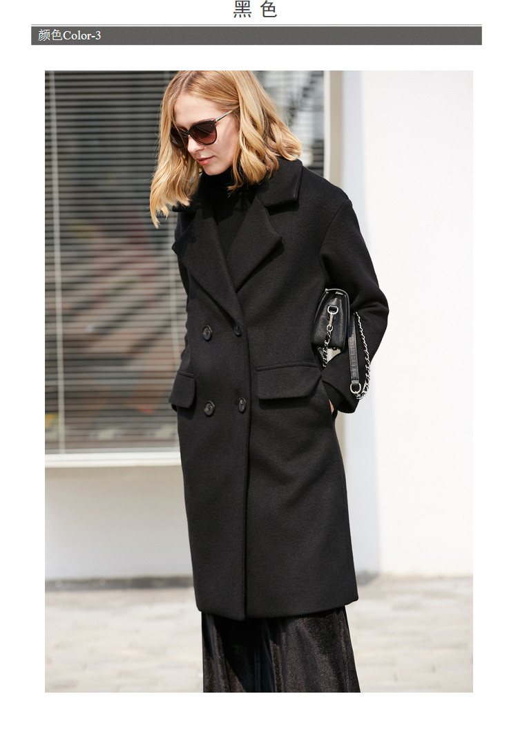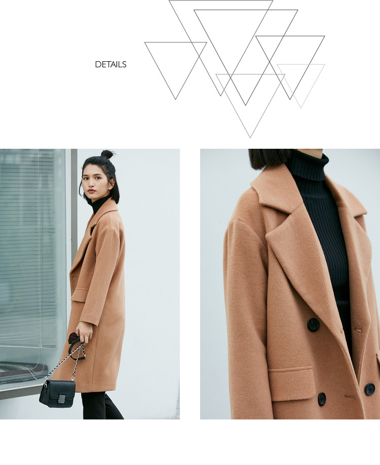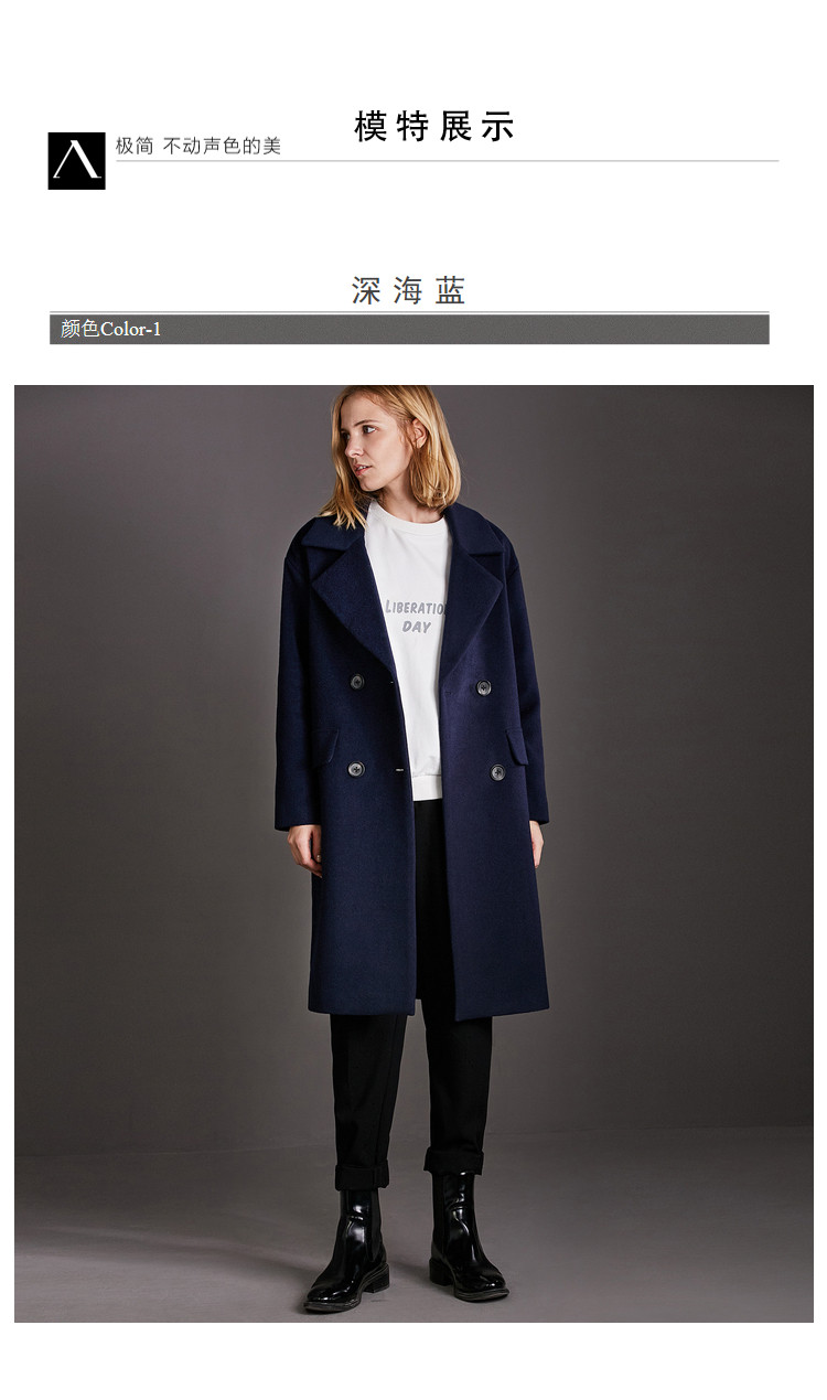 | 面料成分: | 面料:深海蓝、驼色:51.5%羊毛、48.5%聚酯纤维 黑色:46.7%羊毛、53.3%聚酯纤维 里料:100%聚酯纤维 |