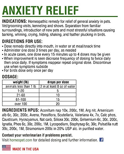 Promotes a sense of calm in animals exhibiting fear, fretting, anxiety, or unwanted behavior caused by: 1) Being left alone/Separation 2) Kenneling, shows 3) Vet Visits 4) Grooming. Helps with Barking, whining, howling, yelping, crying, pacing, panting, restlessness, hiding under table, in bathroom, behind couch. Relieves cowering, trembling, shaking, drooling, vomiting, pooping, destructive behavior.Feature