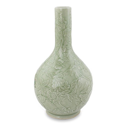 NOVICA Celadon Ceramic Vase 'Siam Garden'