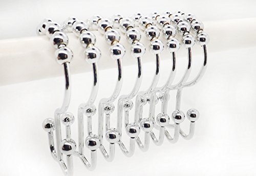 Giant Star Double Glide Shower Curtain Hooks, Stainless Steel Rust Proof Friction Free Polished Chrome, Pack of 12 (Chrome)