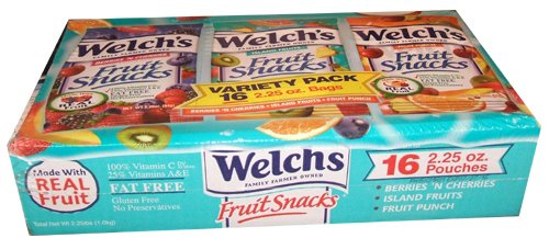 -. Feature : Delicious assortment of Welch's Fruit Snacks in 2.25 Ounce bags / Assortment includes Berries and Cherries / Island Fruits / Fruit Punch / Great for quick snacks, lunch boxes, and goodie bags too.