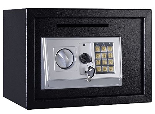 -. Binding : Office Product -. Brand : K&A Company -. Color : Black -. EAN : 0822416438334 -. Feature : Opens with digital pin or included override key / Security code from 3-8 digits using any number from 0-9 / Time out period after 3 incorrect combination attempts / Constructed with 2 mm thick solid steel / Pre-drilled holes behind the safe with included 2" bolts for anchoring -. Label : K&A Company -. Manufacturer : K&A Company -. Model : K&A Company-01-438334 -. MPN : K&A Company-01-438334 -. PackageQuantity : 1 -. PartNumber : K&A Company-01-438334 -. ProductGroup : Office Product -. ProductTypeName : OFFICE_PRODUCTS -. Publisher : K&A Company -. Studio : K&A Company -. Title : K&A Company Safe Box Depository Drop Digital Cash Lock Home Security Jewelry Vault Office Deposit Front Load Door Double New Keypad Electronic Black 14" -. UPC : 822416438334