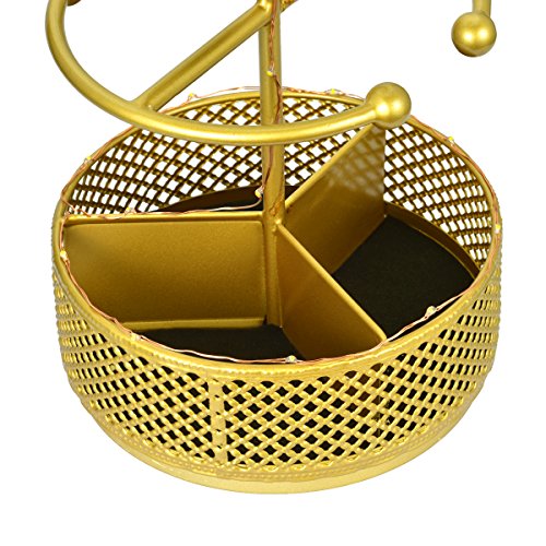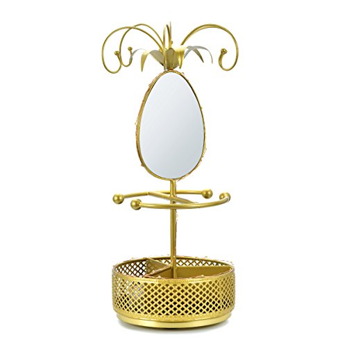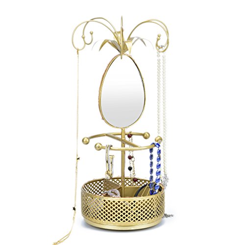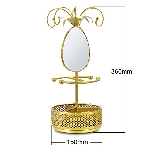 Jewelry Holder Organizer Necklace Hanger Bracelet Organizer Display Flower Rack with Rotatable Mirror and Ring Round Tray, Gold