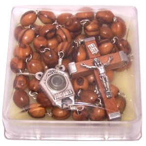 Olive Wood Rosary with Holy Water from the Jordan River - With Certificate of Authenticity (51 cm or 20")