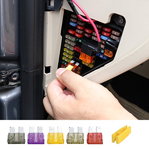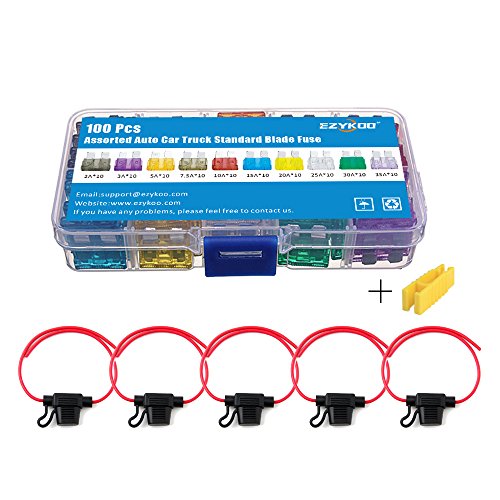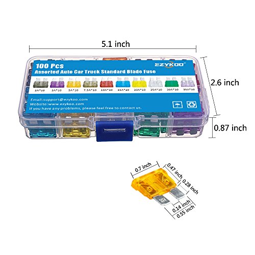 PACKAGE INCLUDES: Total 100pcs fuses, 10 x 2-Amp, 10 x 3-Amp, 10 x 5-Amp, 10 x 7.5-Amp, 10 x 10-Amp, 10 x 15-Amp, 10 x 20-Amp, 10 x 25-Amp, 10 x 30-Amp, 10 x 35-Amp + 5 x Fuse Holders