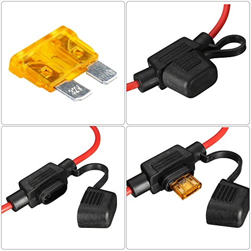 FUSE HOLDERS: 100 Pcs medium-size fuse blade with 5 pack in-line fuse holder with removable waterproof cap can protect fuse from dirt and road splash.