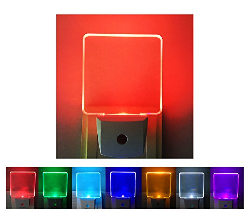 Greenic auto sensor colored LED night light 2 pack, features on the square diffusing panel, smart sensor auto on off, and multiple color choices to meet your needs.