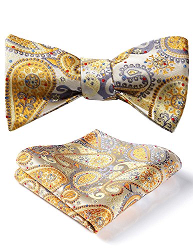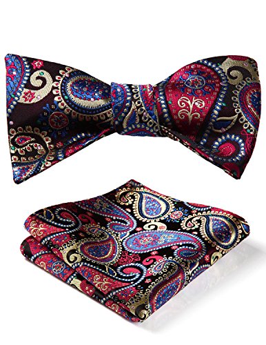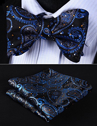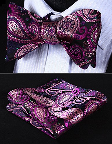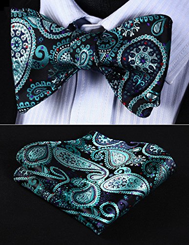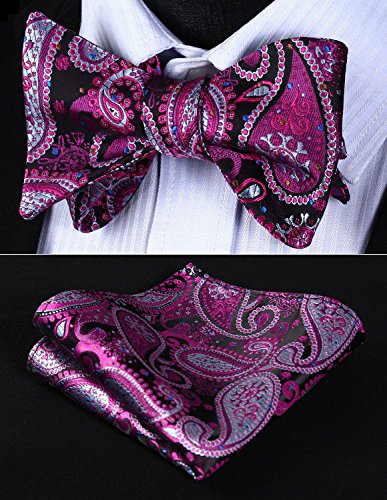 Hisdern Herren Set aus Fliege und Einstecktuch Paisley Jacquard Hochzeit Party quadratisches Tuch