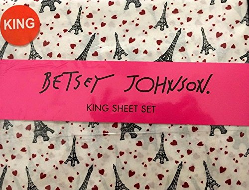 Betsey Johnson Paris Love Eiffel Tower King 4 Piece Sheet Set, White Red Black