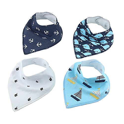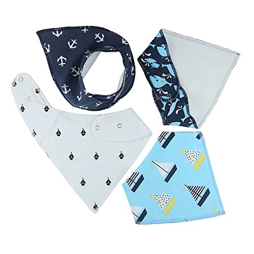 CUTE & COOL BABY DROOL BIBS: Modern set of 4 trendy unisex bibs. Neutral patterns look great on both boys and girls. There is nothing cooler than a stylish bandana bib on a drooling toddler. These super soft, absorbent and hypoallergenic baby bibs with adjustable snaps make your baby will be drooling in style!