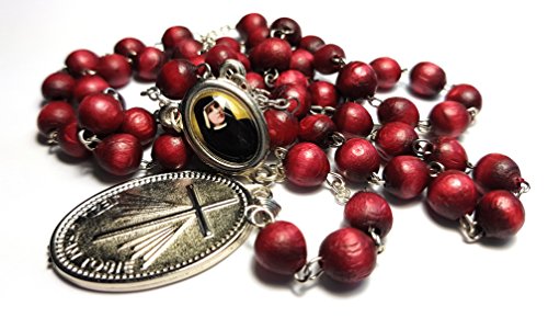 Saint Faustina Kowalska mystic and visionary True Relic Chaplet Apostle Divine of Mercy with Miraculous Medal JESUS I TRUST IN YOU rosary based Three O' Clock prayer Poland Polish Novena (cherry)