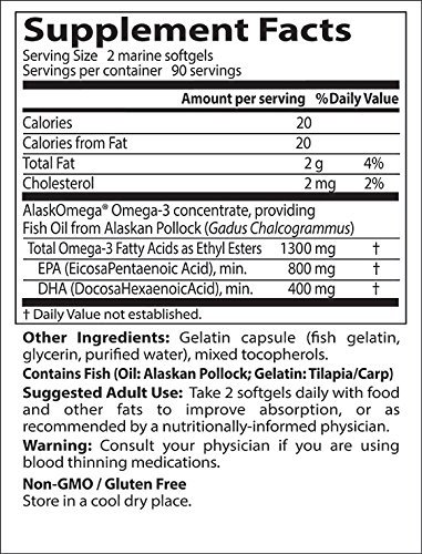 Doctor's Best Pure Wild Alaskan Fish Oil with AlaskOmega, Non-GMO, Gluten Free, 180 Marine Softgels