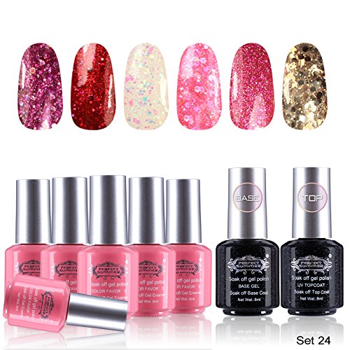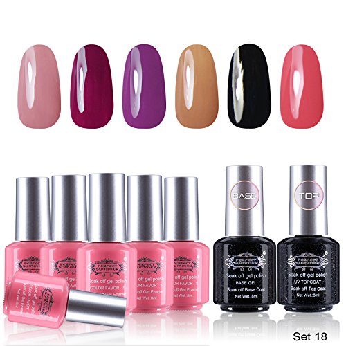 Package Inclued: 6pcs x Colors Gel Polishes; 1pcs x Base Coat; 1pcs x Top Coat. ----Capacity: 8ml/bottle.