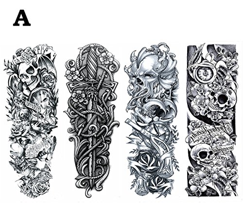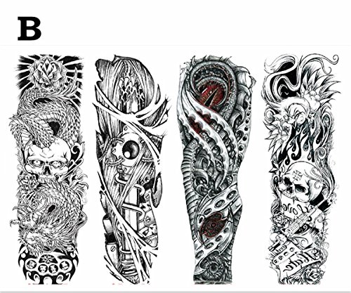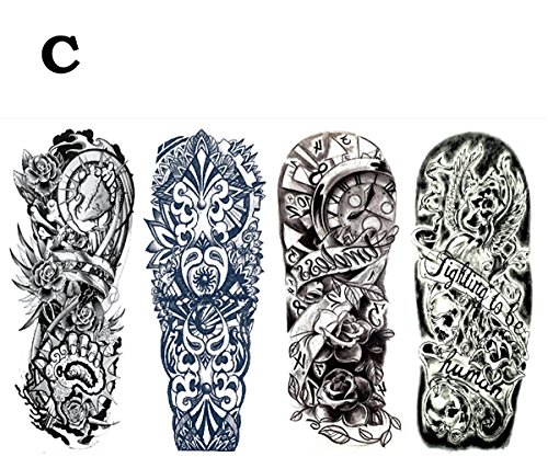 4-Sheets Large Temporary Tattoo Paper Arm Tattoos Rock Star Body Art Waterproof Big Size Tattoo Sticker Make up for Men (C)