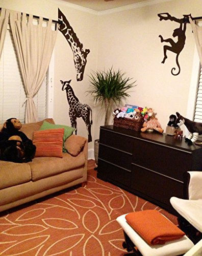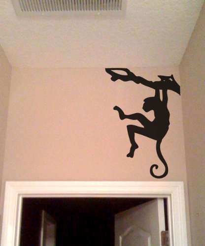 Stickerbrand© Nature/Animals Vinyl Wall Art Safari Monkey on Tree Branch Wall Decal Sticker - Black, 31" x 21". Easy to Apply & Removable.