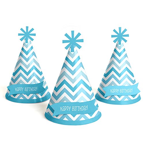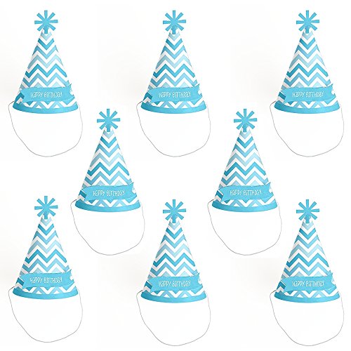 Studio : Big Dot of Happiness, LLC. Publisher : Big Dot of Happiness, LLC. Binding : Toy Product Description Everyone will be ready to celebrate the guest of honor's birthday when wearing a Chevron Blue party hat. This set of 8 birthday party hats is a great addition to your event and is sure to get everyone smiling - especially the birthday boy or girl! Each Chevron Blue Cone Birthday Party Hat perfectly themed and has a festive star at the top. These party hats even come with a "Happy Birthday" pop out flag! Be sure to have your camera ready because these Chevron Blue party hats are going to give you some great photos! 0