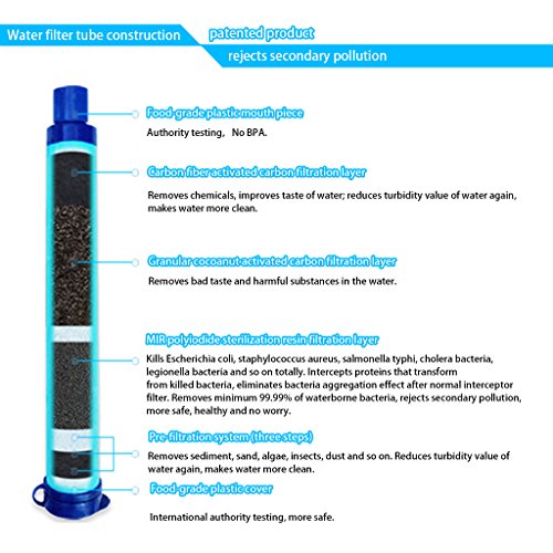 - Filter Capacity: This handy and portable filtration straw has the capacity to filter up to 800 liters of contaminated water without iodine, chlorine or any other harsh chemicals.