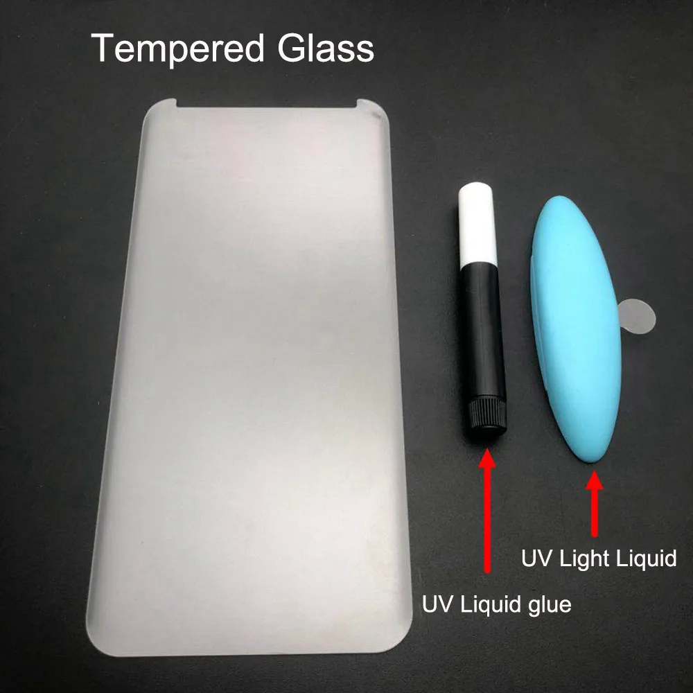 1 set :2 pcs glass ,2 pcs UV glue, 1 pc UV light