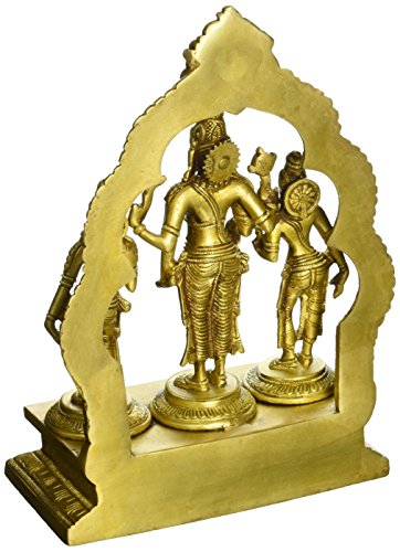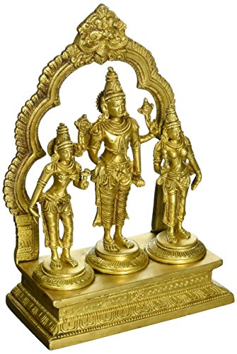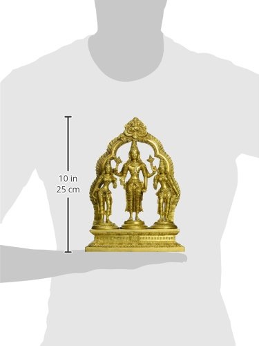 Gangesindia Lord Vishnu With Bhudevi & Sridevi Idol Brass Swami Satyanarayan Statue 3384 (10.25"H x 7.25"W x 3.50"D) Gold