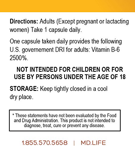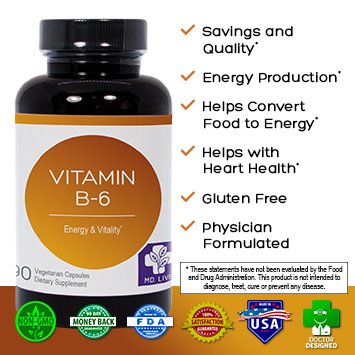 Studio : MD.LIFE Vitamin B-6 Compare Now Food Vitamin B-6 Publisher : MD.LIFE Vitamin B-6 Compare Now Food Vitamin B-6 Binding : Health and Beauty Product Description Vitamin B-6 is one of the B vitamins that is particularly important in the formation of our body proteins and structural compounds. It is also necessary for our nervous system and formation of red blood cells in our body. B6 helps maintain brain function.t facilitates the conversion of amino acids from one to another and is necessary for the normal synthesis of hemoglobin and the normal function and growth of red blood cells. It is also needed for the synthesis of the neurotransmitters serotonin, gamma amino butyric acid (GABA) and dopamine and for the conversion of essential fatty acids into prostaglandins. MD.LIFE offers a money back guarantee and ships within 24 hours. 0