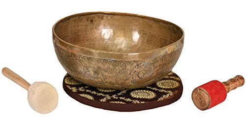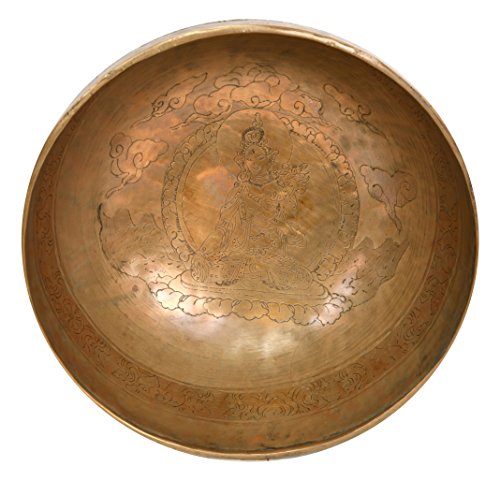 Singing Bowl with the Image of Green Tara Inside - Brass and Wood Statue