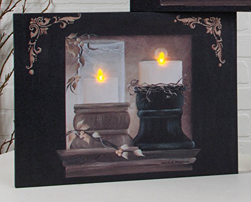 Pillar Candleholders Flickering Light Canvas Wall Plaque