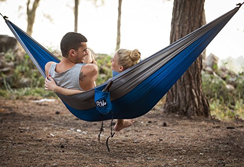 Outdoors and Indoors 2 Person Parachute Nylon Camping Hammock , Strong, Comfortable and Lightweight with Quick and Easy Set-up, Bonus Water Resistant Carrying Case and Sleep Mask. Just Add Summer