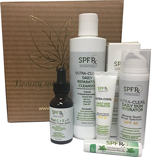 SPF Rx's Daily Radiant Skin Gift Set: Start with The Ultra Clear Daily Reparative Cleanser (8 oz) with 12 blended bionutrient herbs that reduce redness and irritation, help control oiliness and breakouts, while promoting healthy skin function. PLUS This set contains a Free Ultra Clear Travel Tube (12.5ml) and SPF15 Spearmint Lip Balm.