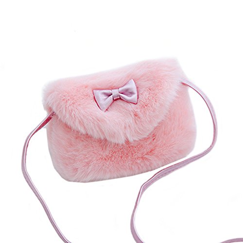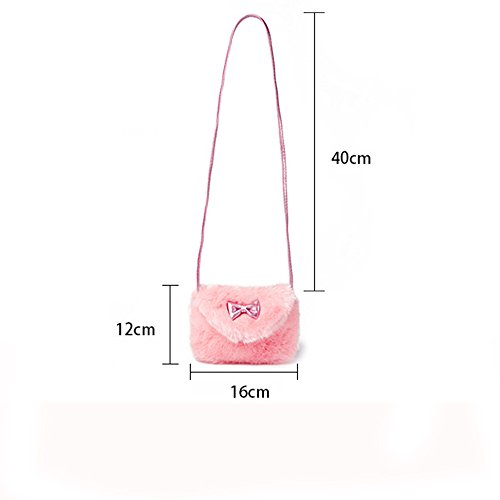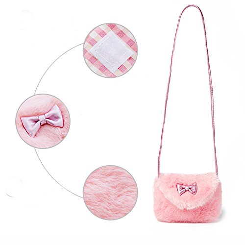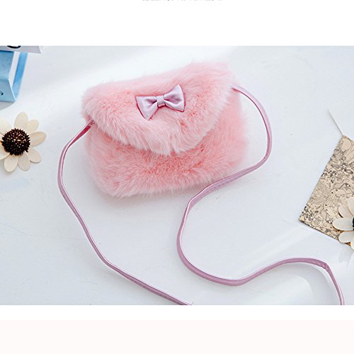 Pinky Family Kids' Cute Hairy Handbag Girls Shoulder Bag Baby Toddler Crossbody Purse Messenger Bag Bowknot (Pink)