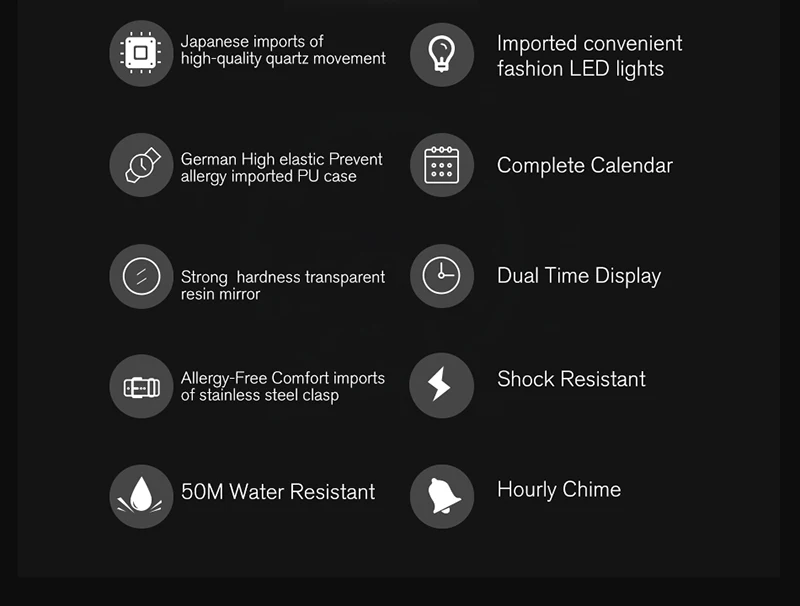 Feature:Water Resistant,Stop Watch,Back Light,Complete Calendar,Shock Resistant,Alarm,Swim