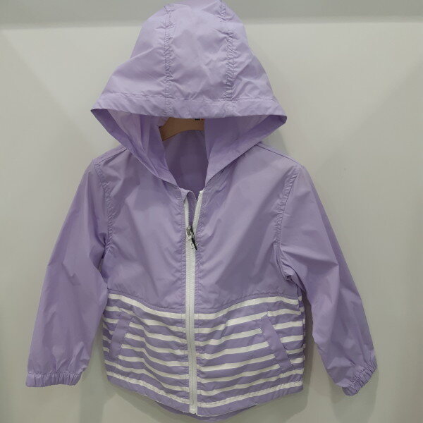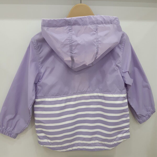 솔리드 색상과스트라잎 배색을 믹스한 바람막이 후드아우터