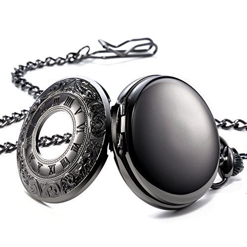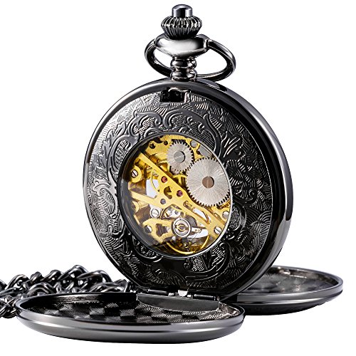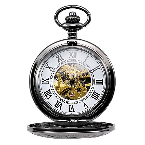 -. Title : Treeweto Mens Skeleton Mechanical Pocket Watch, Retro Roman Numerals, Half Hunter, Black
