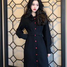 气质复古过膝长袖法式收腰针织中长款连衣裙女秋装2018新款毛衣裙