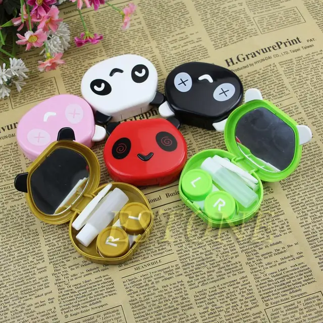 상품 내용 1 개 크리스마스 선물 미니 야외 팬더 모양 여행 콘택트 렌즈 보관 케이스 상자 컨테이너 홀더