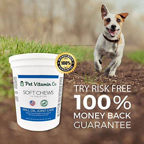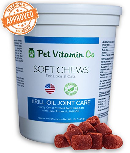 Pet Vitamin Co - Antarctic Krill Oil Joint Formula Soft Chews for Cats & Dogs ✔ Rich in Omega 3 & Antioxidants ✔ Glucosamine & MSM for Healthy Joints ✔Hypoallergenic ✔ Made in USA✔ 60 Soft Chews
