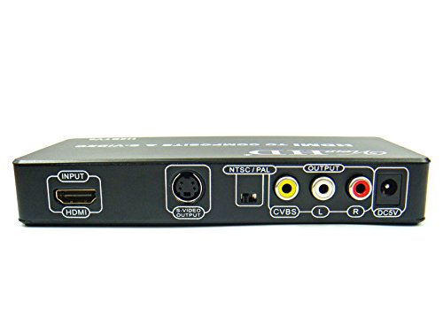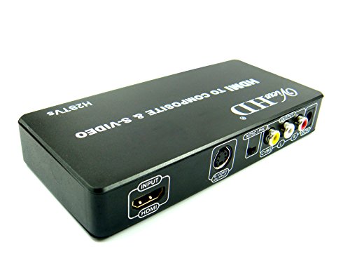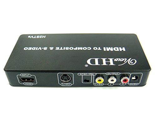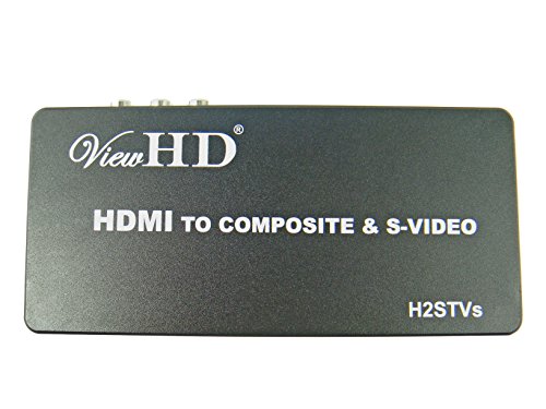 Studio : ViewHD Publisher : ViewHD Binding : Electronics Product Description This converter box is designed to convert HDMI to either Composite Video or S-Video. It allows standard analog TV to use devices only equipped with HDMI output. It can support both AV composite Video and S-Video outputs at the same time. The output resolution is 480i for NtSC, 576i for PAL, it is NOT HD resolution. It adopts the newest generation chipset to provide the best AV conversion performance in product category. Features: 1. HDMI Input Supports All NTSC and PAL Resolutions up to 1080P: 480p(60Hz), 576P(50Hz), 720p(50Hz/60Hz),1080i(50Hz/60Hz), 1080p(50Hz/60Hz) 2. Output Signal: Composite Video 480i (1.0Vpp), S-Video (Y:1.0Vpp, C:0.3Vpp) 3. Output Video Systems: PAL / NTSC, with a switch 4. Output Video Impedance:75Ω 5. Compatible with HDMI 1.3, support input HDMI video up to 1080P 6. Power Supply: DC 5V 7. Working Temperature:-25℃ ~ 75℃ 8. Working Humidity: 10% ~ 60% 9. Product Dimension: 152*70*26mm(L*W*H) Package Includes: 1 H2STVs Converter 1 universal 100V - 240V Power Adapter with US plug 1 User Manual 1 Composite RCA AV Cable (yellow, red, white), 3.6ft 1 S-Video Cable, 4.5ft ViewHD One Year Warranty Key Troubleshooting Tips: Please make sure to set the NTSC / PAL switch correctly. If you see output video in black white, without color, most likely the NTSC / PAL switch is at the wrong position. To get audio, the audio signal in the HDMI input must be in stereo format; therefore, if you don't get sound, please make sure the HDMI source sends audio in stereo format. Please make sure the incoming HDMI signal format is standard at either 50Hz or 60Hz.