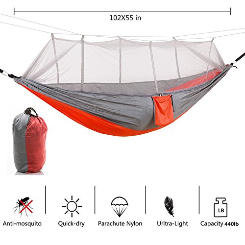 Mosquito-proof, sweet designed with mosquito net and smooth reversible zippers,Needle-like meshes and easily-close zippers, effectively prevent from mosquitoes and insects,making you comfortable to sleep in the hammock,Our design allows the hammock to be simply turned over for use with or without mosquito net.