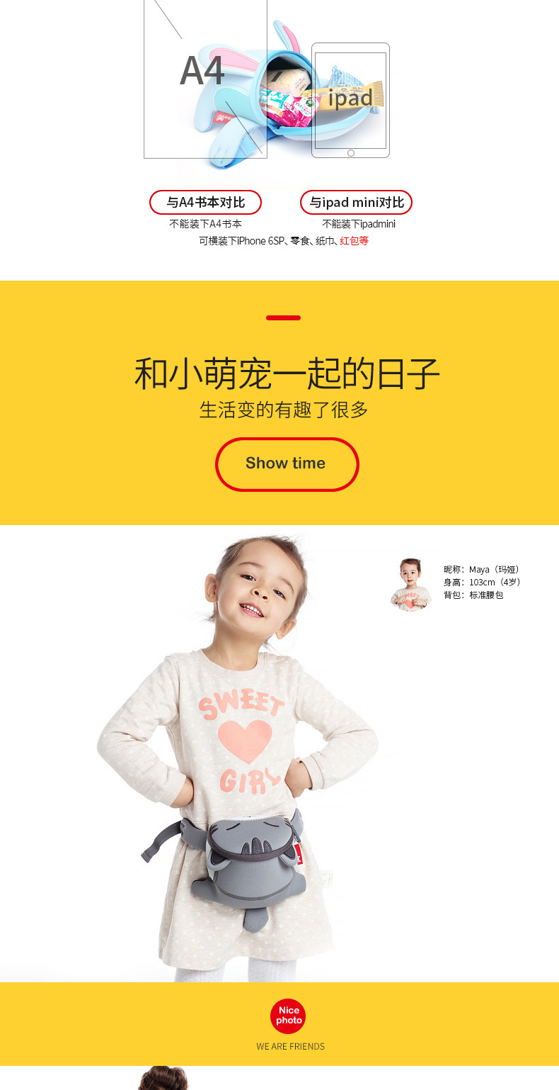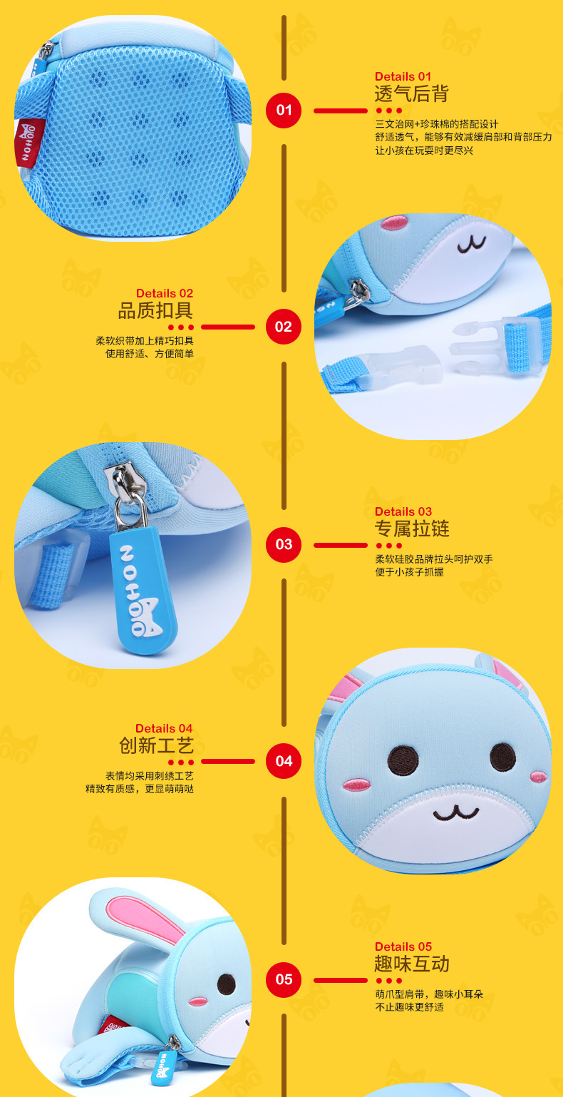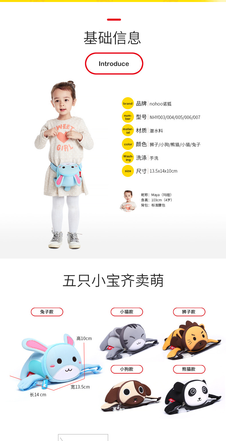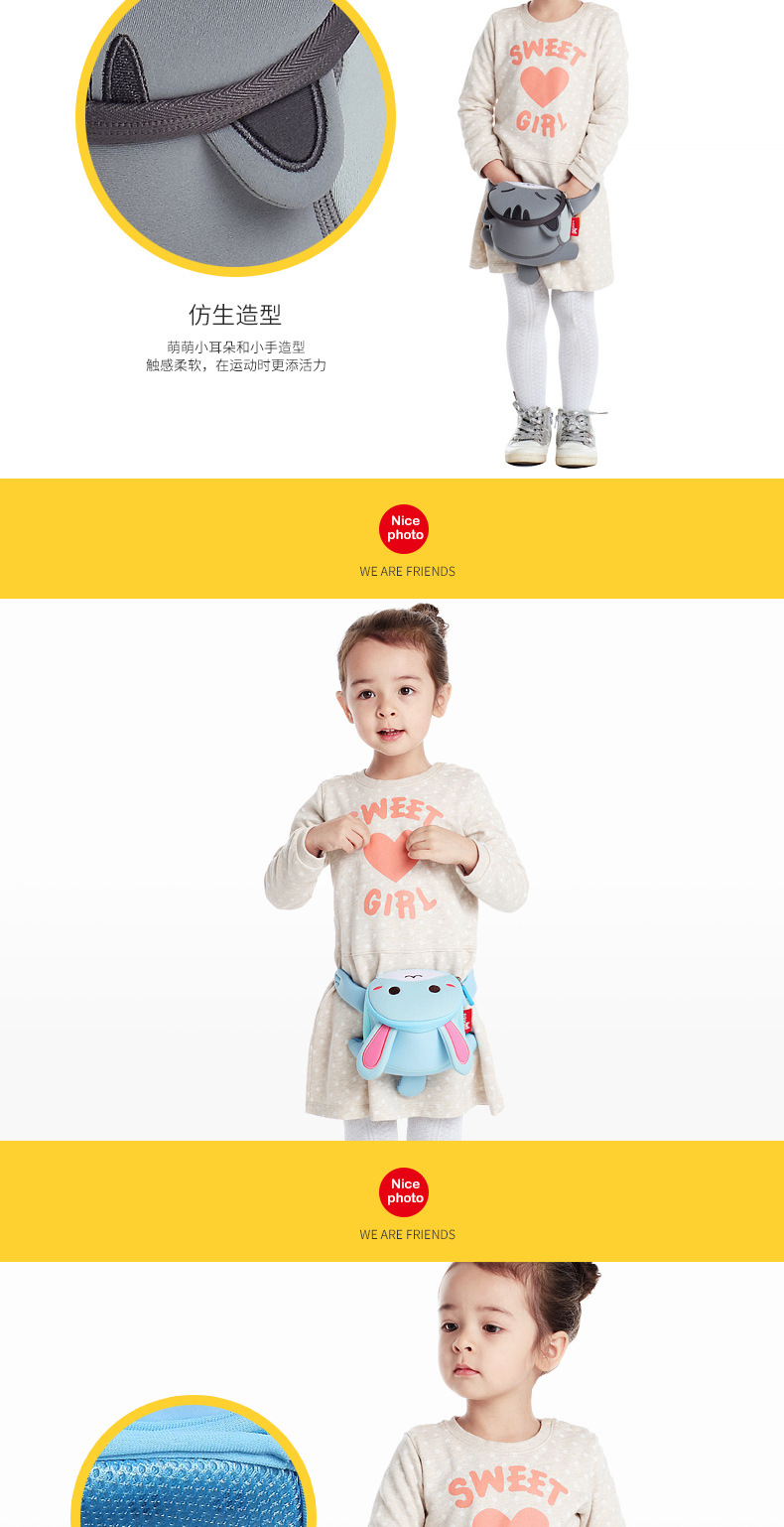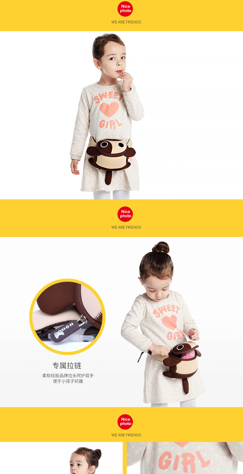 诺狐采用独特的Neoprene潜水料,有别于一般材质,潜水料具有良好的柔软性与弹性,防水防潮,质地轻盈等特点,有适用于专业潜水衣及各种运动领域,其立体塑形极具个性的特性更风靡时尚圈。诺狐童包独特的设计与良好的材质有别于一般的儿童包,立体结构剪裁,鲜艳大胆的配色,打材料的特性发挥到淋漓尽致,为我们的用户提供缤纷、舒适、健康的产品体验。