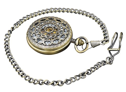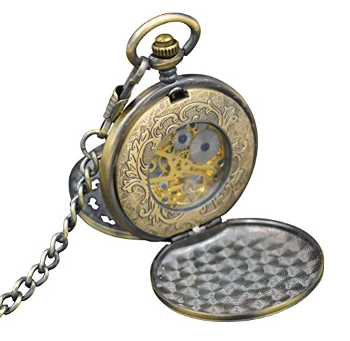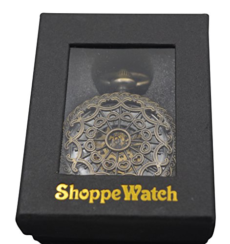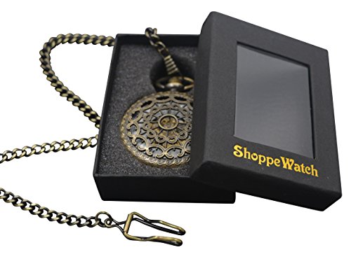 -. Feature : Wind Up Pocket Watch with Bronze Case / White Dial with Black Roman Numerals / Half Hunter Hand-Wind Mechanical Movement Reloj Skeleto / Great item for Gift Giving / Comes in 'ShoppeWatch' Brand Gift Box