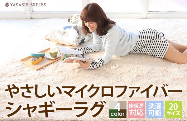 やさしいマイクロファイバーシャギーラグ ベージュ 長方形(50×100cm)