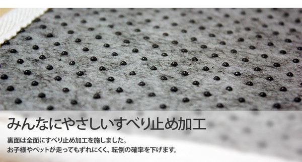 裏面は全面にすべり止め加工を施しました。お子様やペットが走ってもズレにくく、転倒の確率を下げます。
