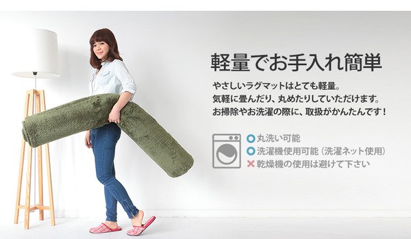 やさしいラグマットはとても軽量。女性でも気軽に畳んだり、丸めたりしていただけます。お掃除やお選択の際に、取扱いがかんたんです!
