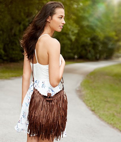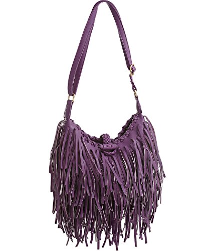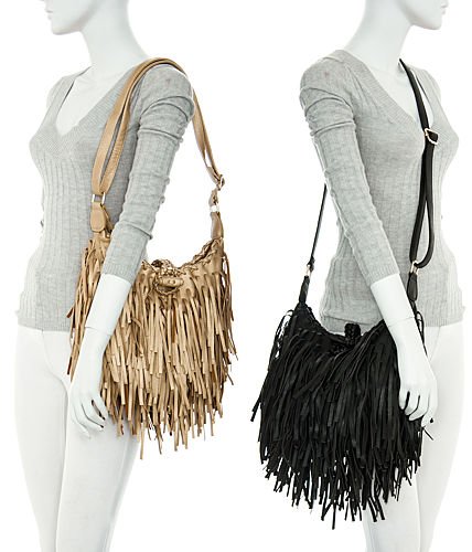 -. Title : Hippie Fringe Shoulder-to-Crossbody Adjustable Hobo Bag