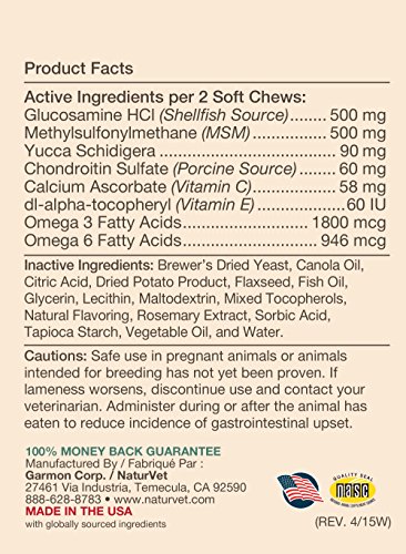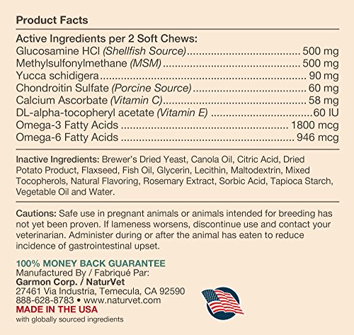 -. Title : NaturVet Glucosamine DS Plus Level 2 Moderate Joint Care for Dogs and Cats, Soft Chews, Made in USA