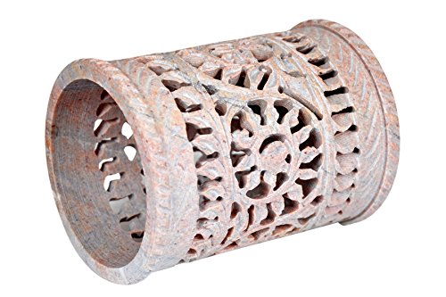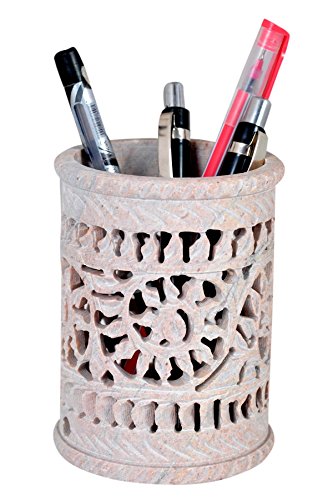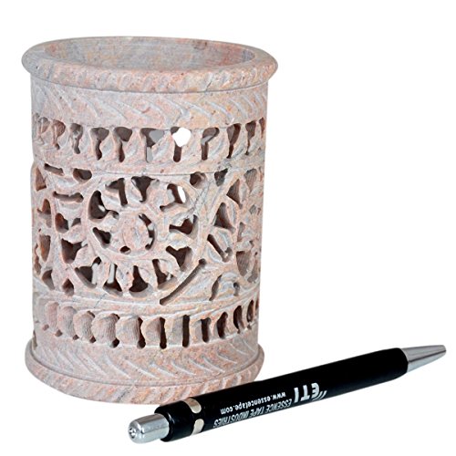 Hashcart Hand Carved Floral Carving Marble Pen Stand With Floral Carving -3 x 3 Inch